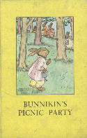 Bunnikin's Picnic Party *The very first title in the original 401 series. First published in 1940. The first edition would have a Dust Jacket. Written in verse. The author of the original story was A J Macgregor who was also the illustrator, with revised verses by W.Perring. The up-dated cover depicts a scene portrayed in the book. The earlier mounted image as seen on the circa 1967 is specific to the cover. | |